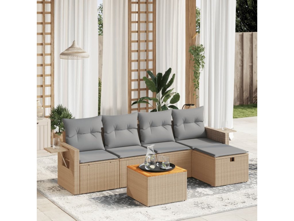 6dílná zahradní sedací souprava a podušky mix béžové polyratan 3264944
