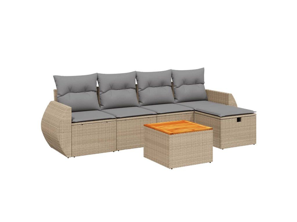 6dílná zahradní sedací souprava a podušky mix béžové polyratan 3265056