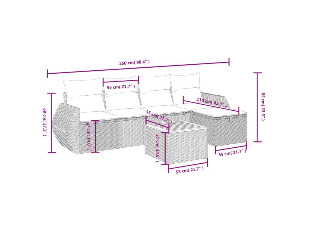 Tato zahradní sedací souprava je dokonalým doplňkem vaší zahrady, terasy nebo dvorku a poskytne vám pohodlné a příjemné místo, kde si můžete povídat s rodinou a přáteli nebo jen tak odpočívat a užívat si pobyt venku.