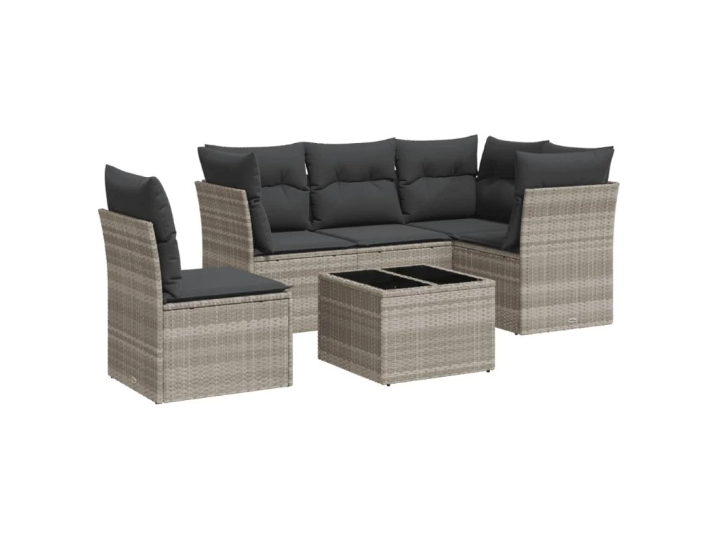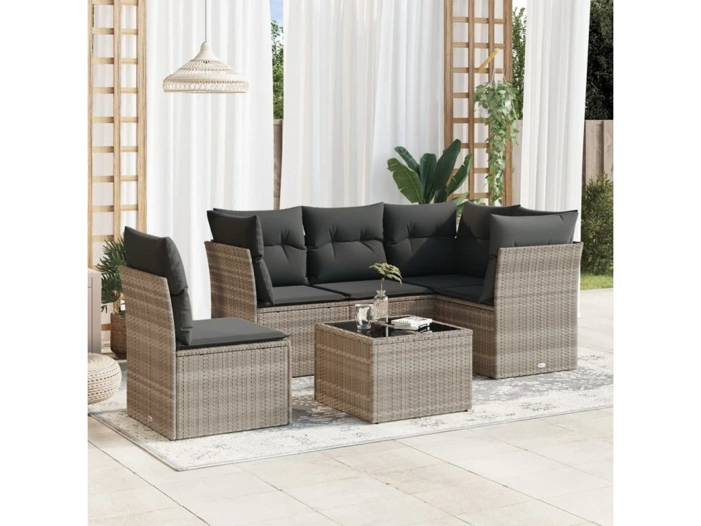 6dílná zahradní sedací souprava a podušky světle šedá polyratan 3217652