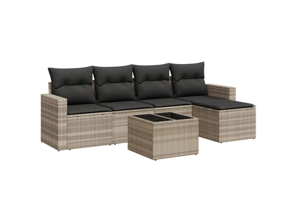 6dílná zahradní sedací souprava a podušky světle šedá polyratan 3218892