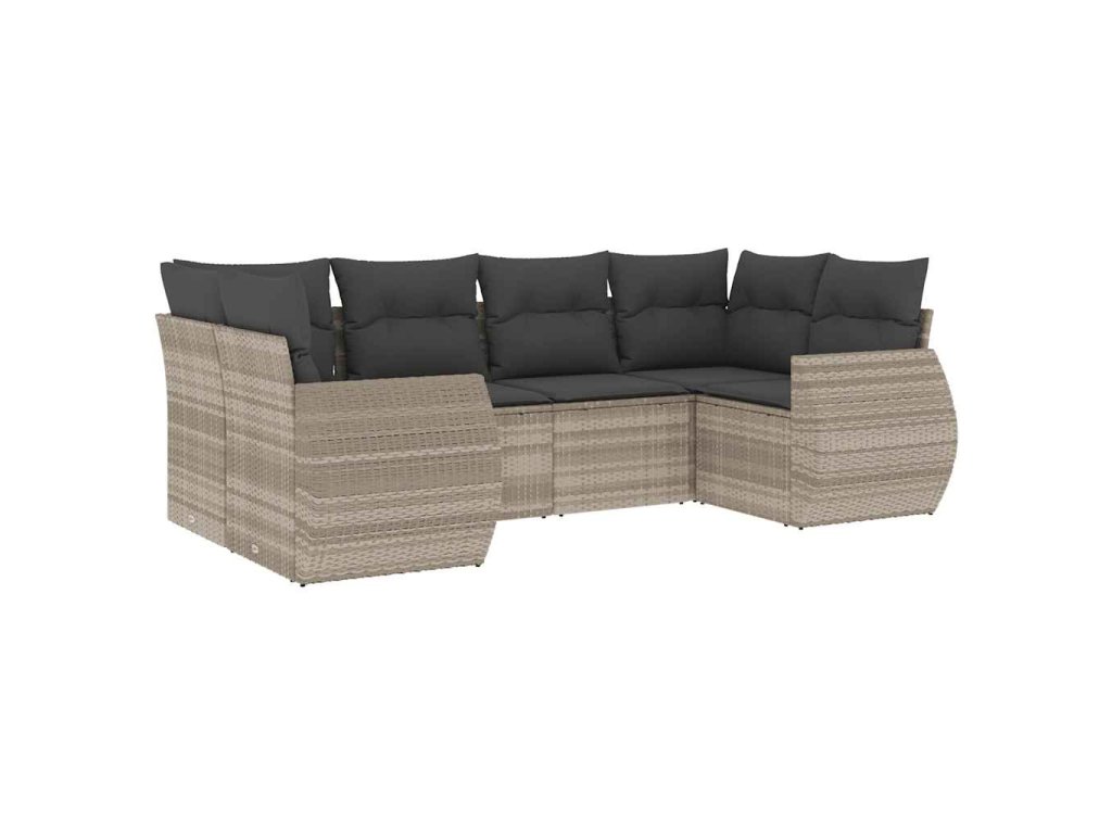 6dílná zahradní sedací souprava a podušky světle šedá polyratan 3221781