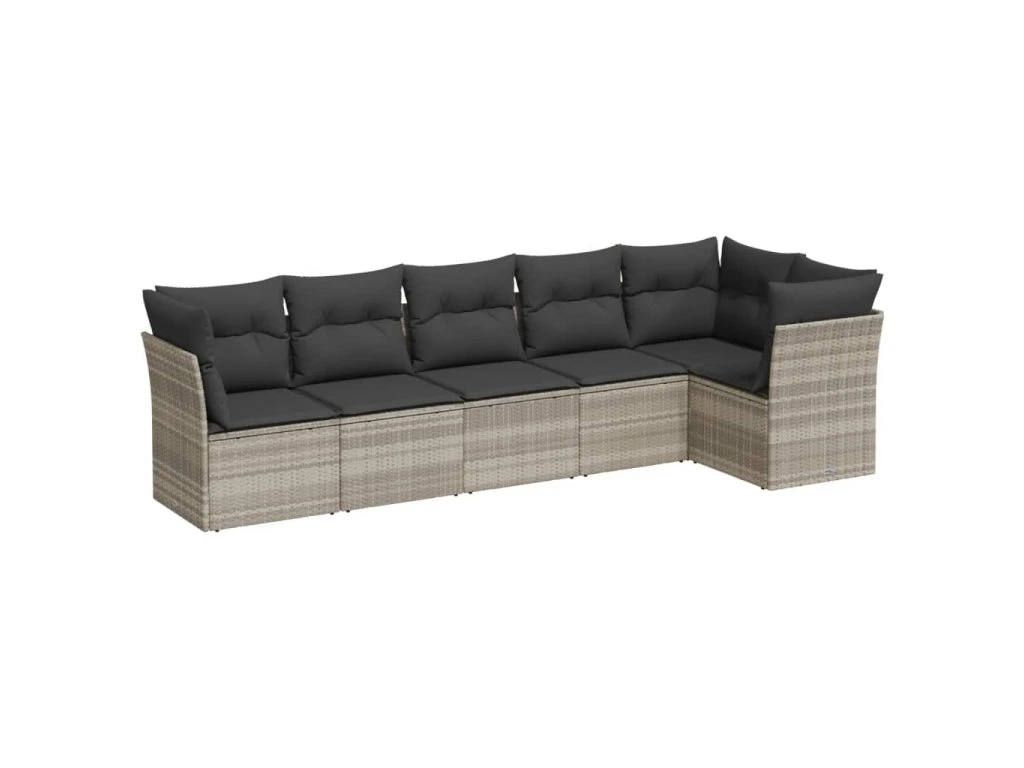 6dílná zahradní sedací souprava a podušky světle šedá polyratan 3249501