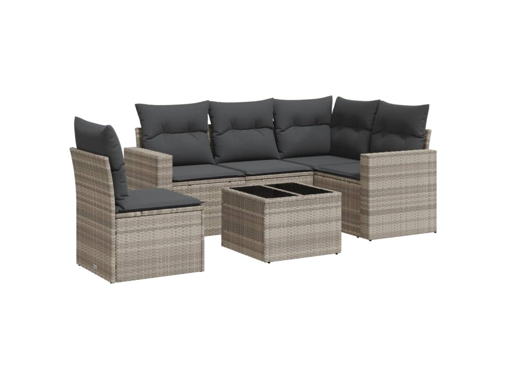6dílná zahradní sedací souprava a podušky světle šedá polyratan 3251319