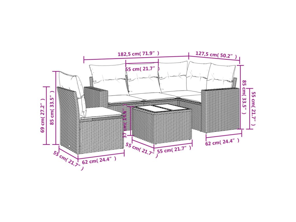 Tato zahradní sedací souprava je dokonalým doplňkem vaší zahrady, terasy nebo dvorku a poskytne vám pohodlné a příjemné místo, kde si můžete povídat s rodinou a přáteli nebo jen tak odpočívat a užívat si pobyt venku.