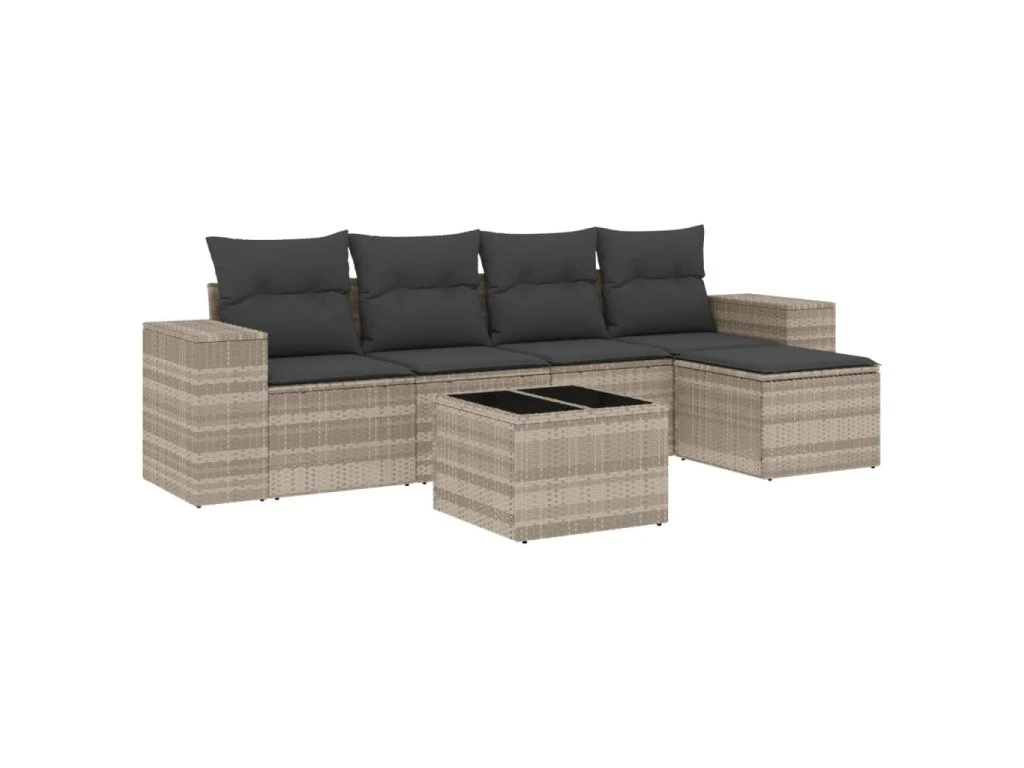 6dílná zahradní sedací souprava a podušky světle šedá polyratan 3254839