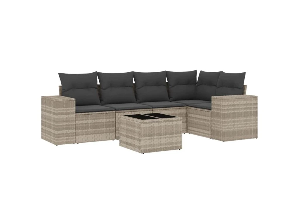 6dílná zahradní sedací souprava a podušky světle šedá polyratan 3254879