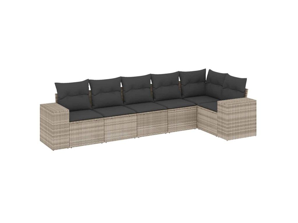 6dílná zahradní sedací souprava a podušky světle šedá polyratan 3254929