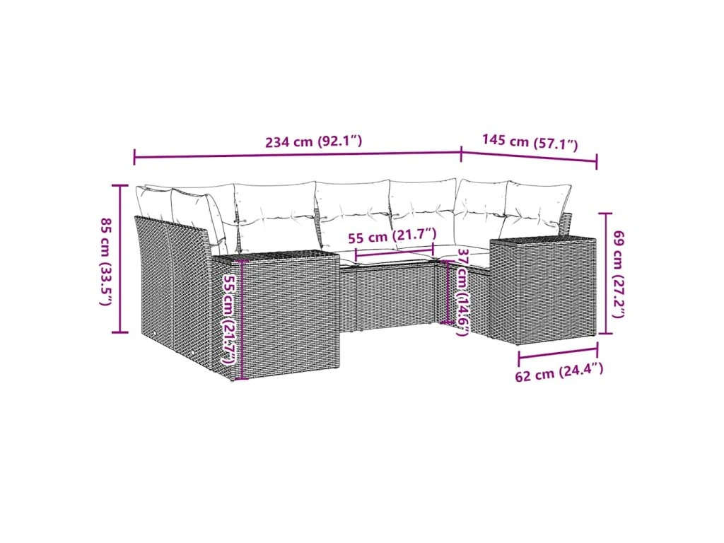 Tato zahradní sedací souprava je dokonalým doplňkem vaší zahrady, terasy nebo dvorku a poskytne vám pohodlné a příjemné místo, kde si můžete povídat s rodinou a přáteli nebo jen tak odpočívat a užívat si pobyt venku.