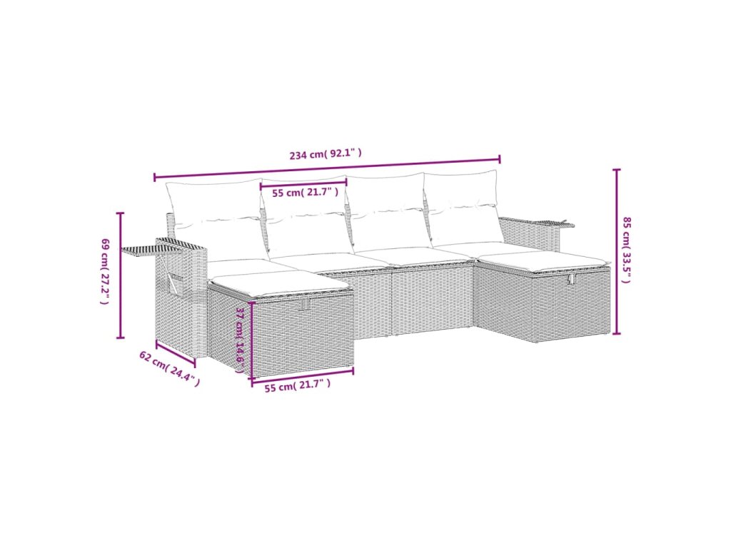 Tato zahradní sedací souprava je dokonalým doplňkem vaší zahrady, terasy nebo dvorku a poskytne vám pohodlné a příjemné místo, kde si můžete povídat s rodinou a přáteli nebo jen tak odpočívat a užívat si pobyt venku.