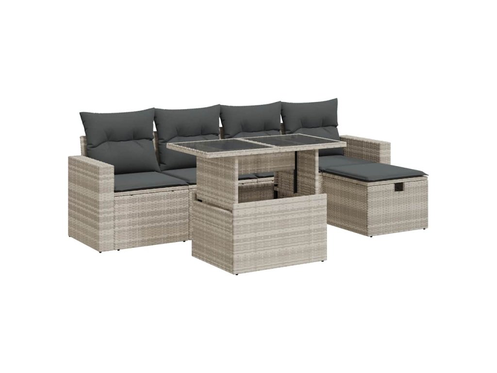 6dílná zahradní sedací souprava a podušky světle šedá polyratan 3327812