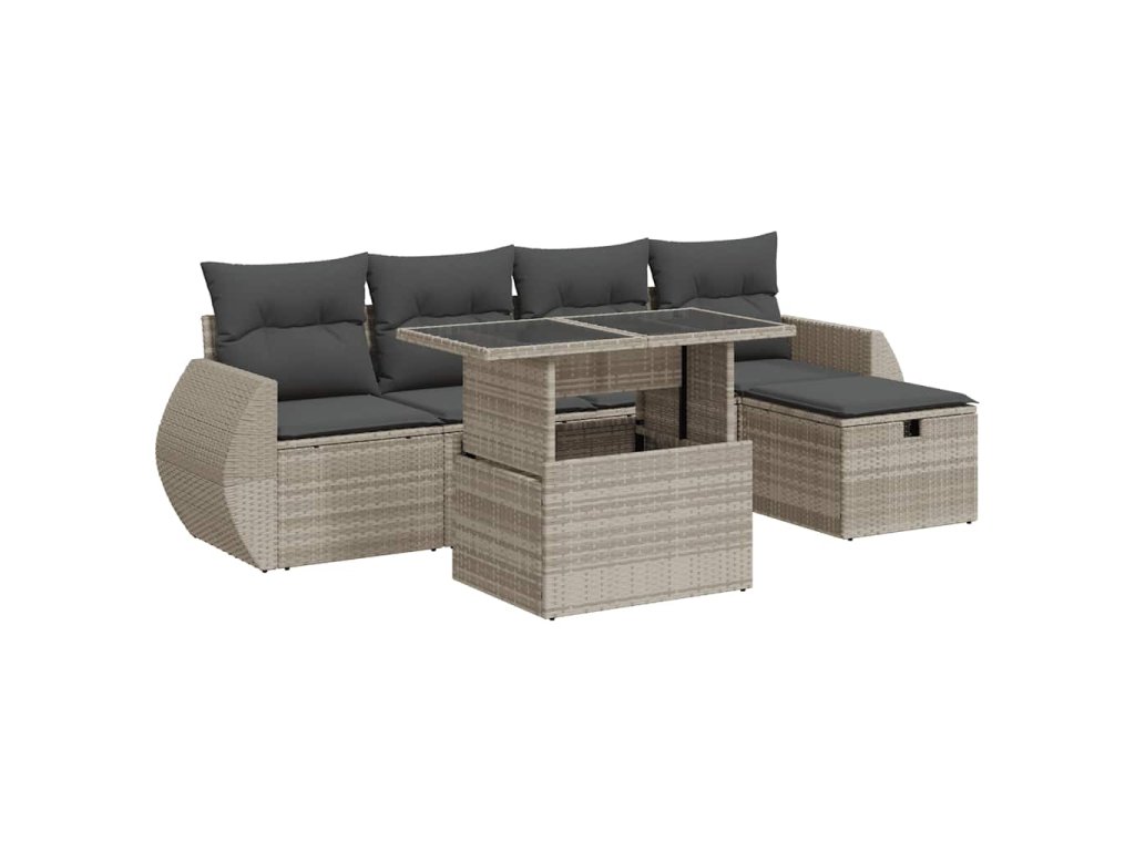 6dílná zahradní sedací souprava a podušky světle šedá polyratan 3327892