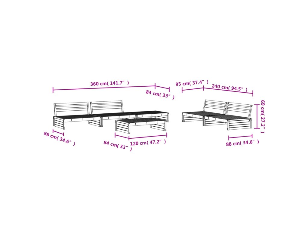 - Rozměry středové pohovky: 120 x 95 x 69 cm (D x Š x V)