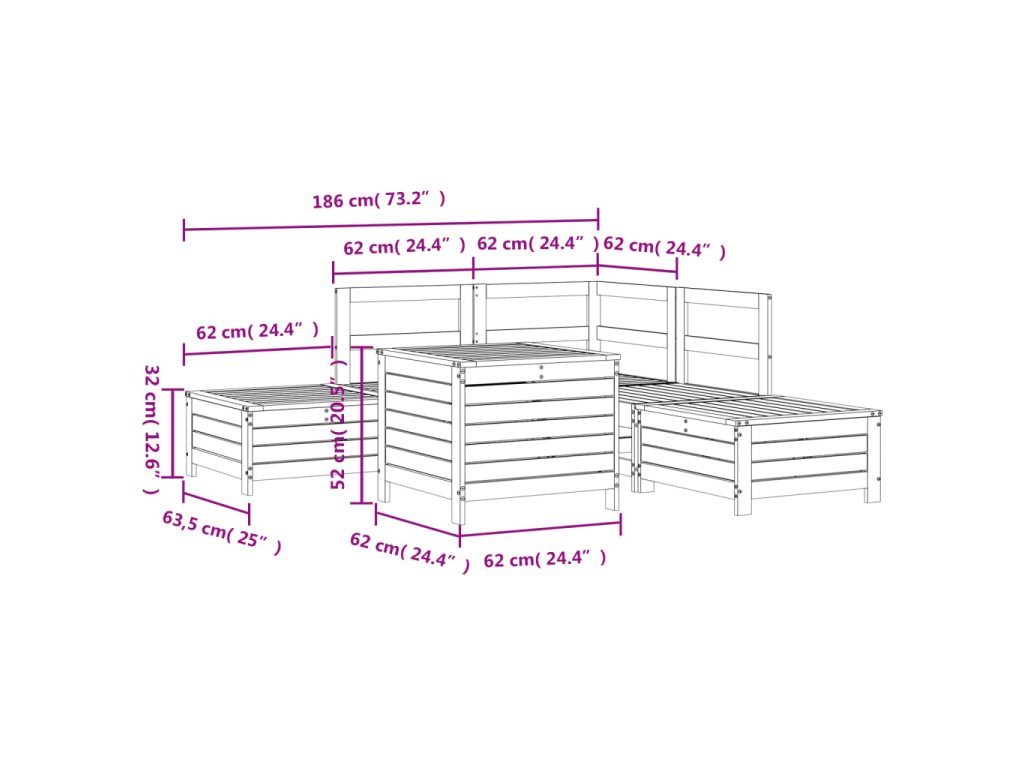 6dílná zahradní sedací souprava bílá masivní borovice 3250705