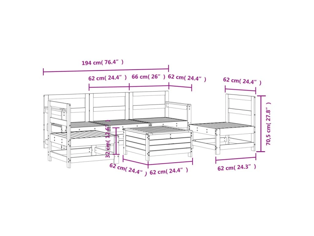 6dílná zahradní sedací souprava bílá masivní borovice 3250729