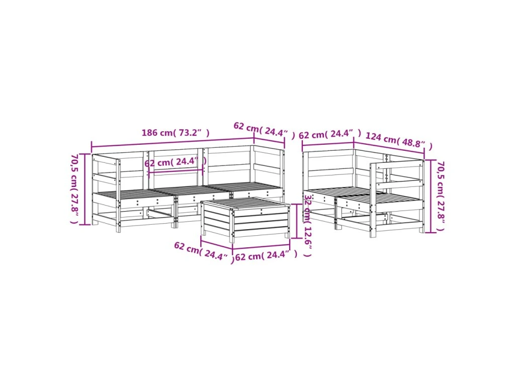 6dílná zahradní sedací souprava bílá masivní borovice 3250805