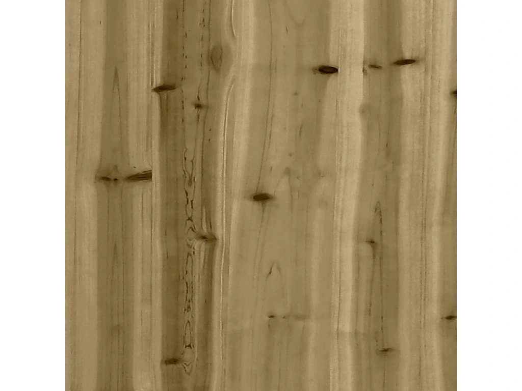 - Pevný a odolný materiál: Masivní borové dřevo je známé svou pevností a odolností. Jeho rovná textura a výrazné suky přispívají k jeho rustikálnímu kouzlu. Dřevo bylo napuštěno konzervačním roztokem a ošetřeno v autoklávu, čímž se zvýšila jeho odolnost proti hnilobě a povětrnostním vlivům.