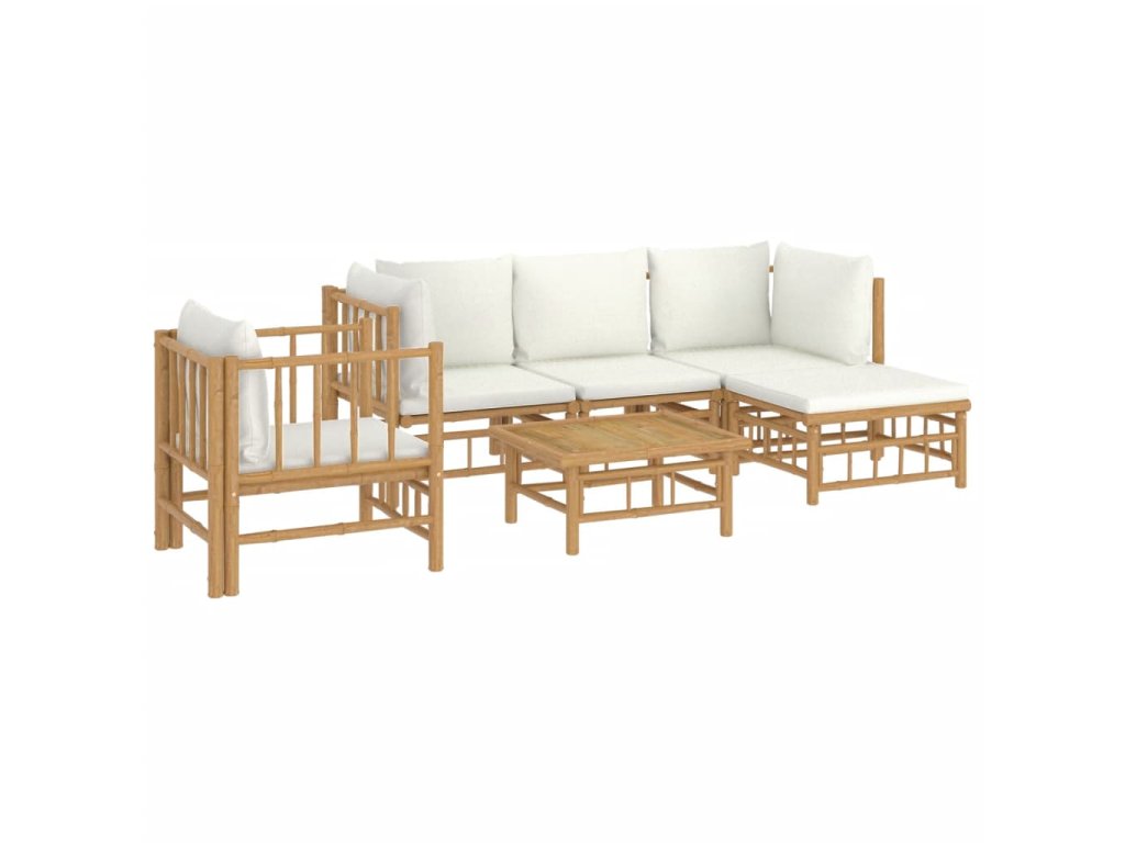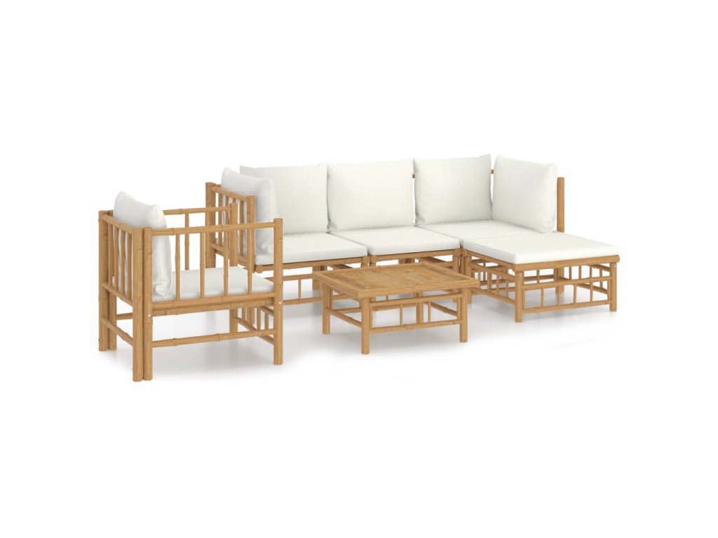 6dílná zahradní sedací souprava krémově bílé podušky bambus 3155179