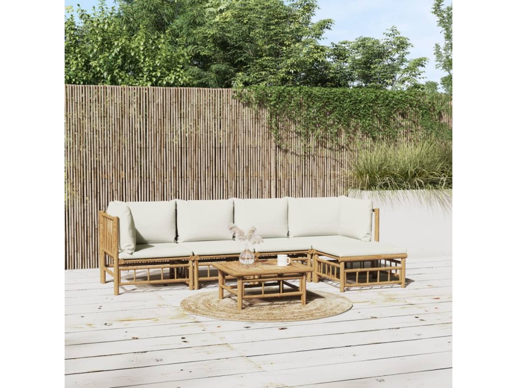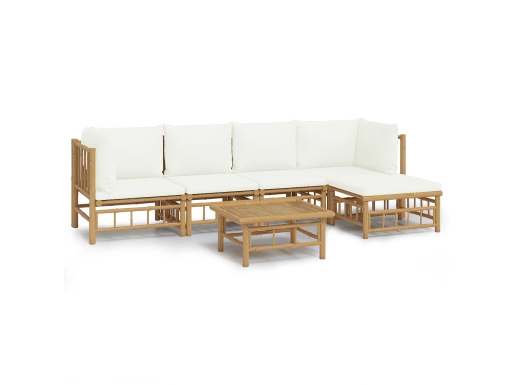 6dílná zahradní sedací souprava krémově bílé podušky bambus 3155200