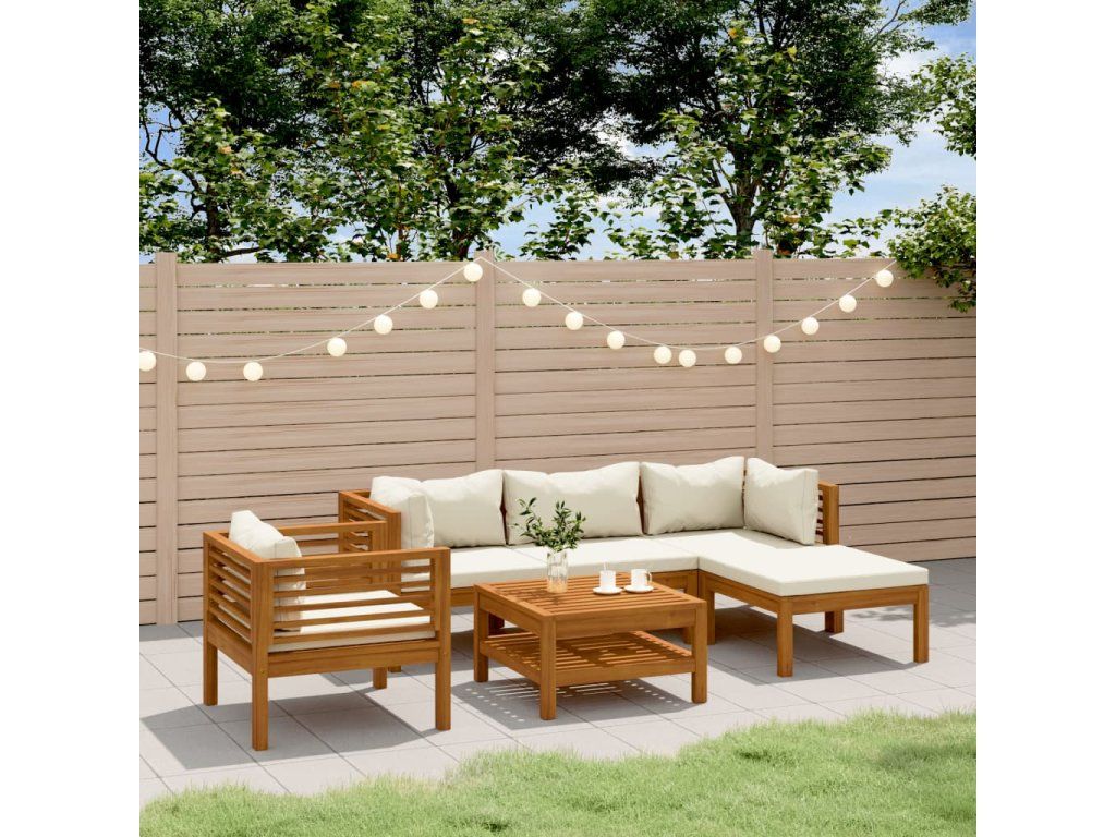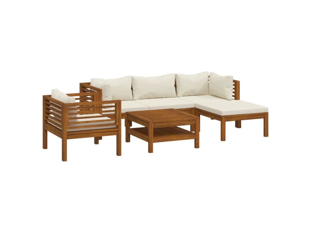 6dílná zahradní sedací souprava krémové podušky masivní akácie 3086928