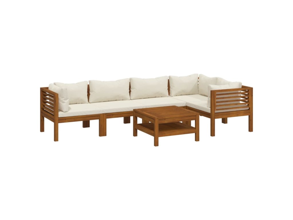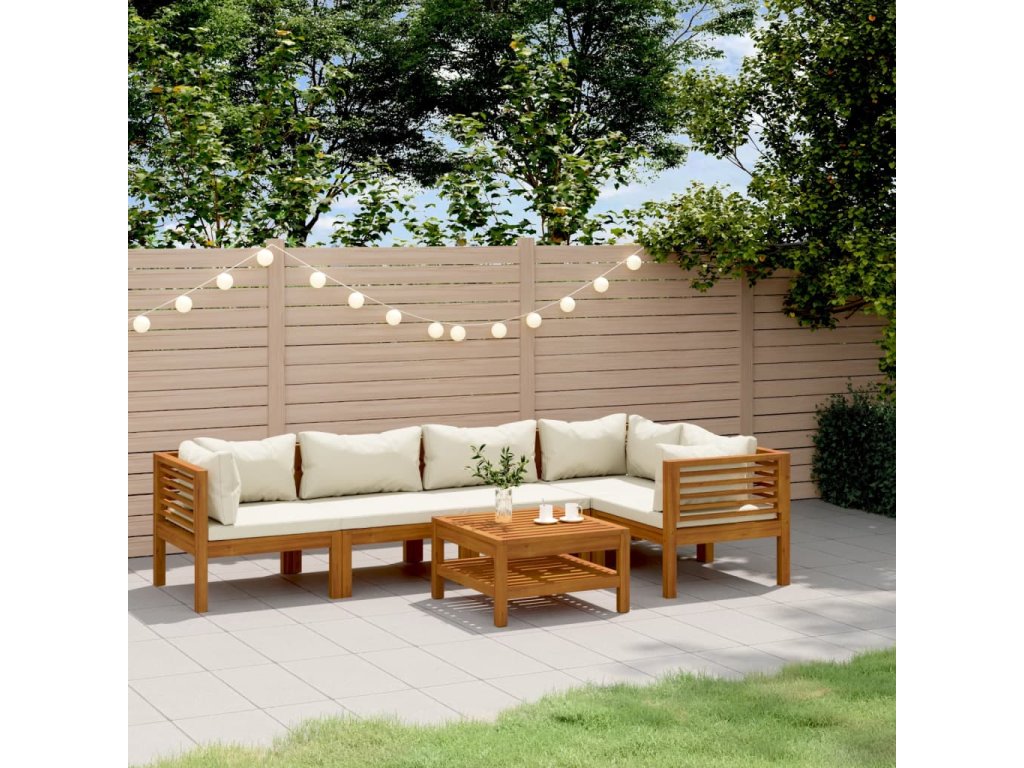 6dílná zahradní sedací souprava krémové podušky masivní akácie 3086950