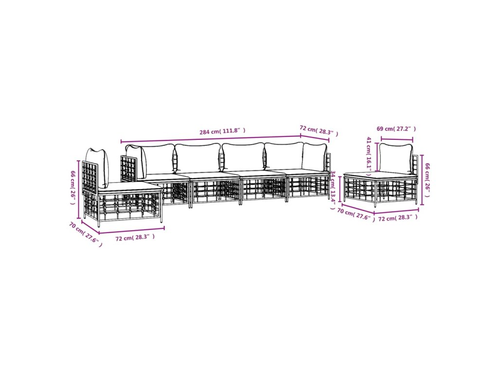 6dílná zahradní sedací souprava s poduškami antracit polyratan 3186721