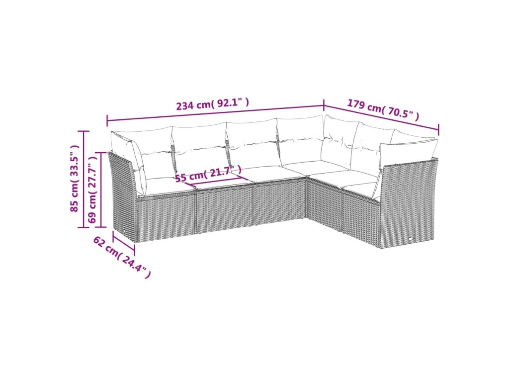 Tato zahradní sedací souprava je dokonalým doplňkem vaší zahrady, terasy nebo dvorku a poskytne vám pohodlné a příjemné místo, kde si můžete povídat s rodinou a přáteli nebo jen tak odpočívat a užívat si pobyt venku.