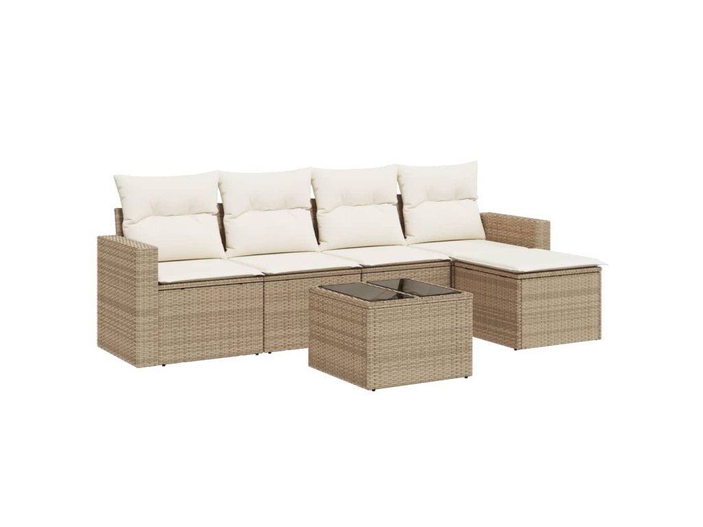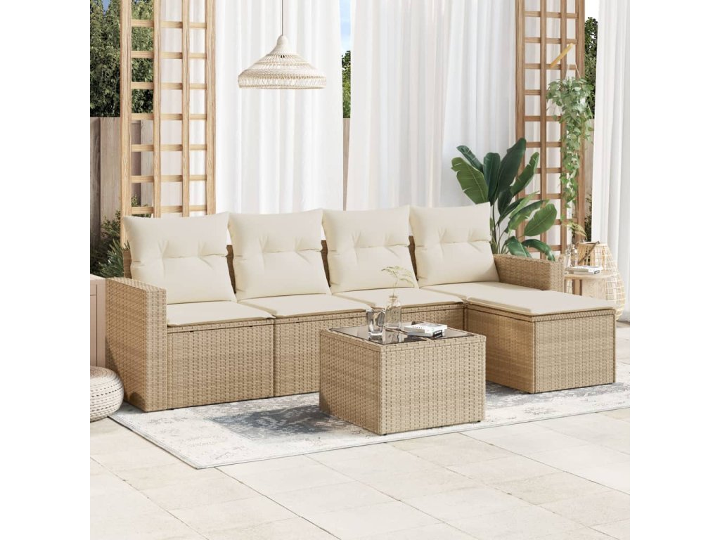 6dílná zahradní sedací souprava s poduškami béžová polyratan 3218888