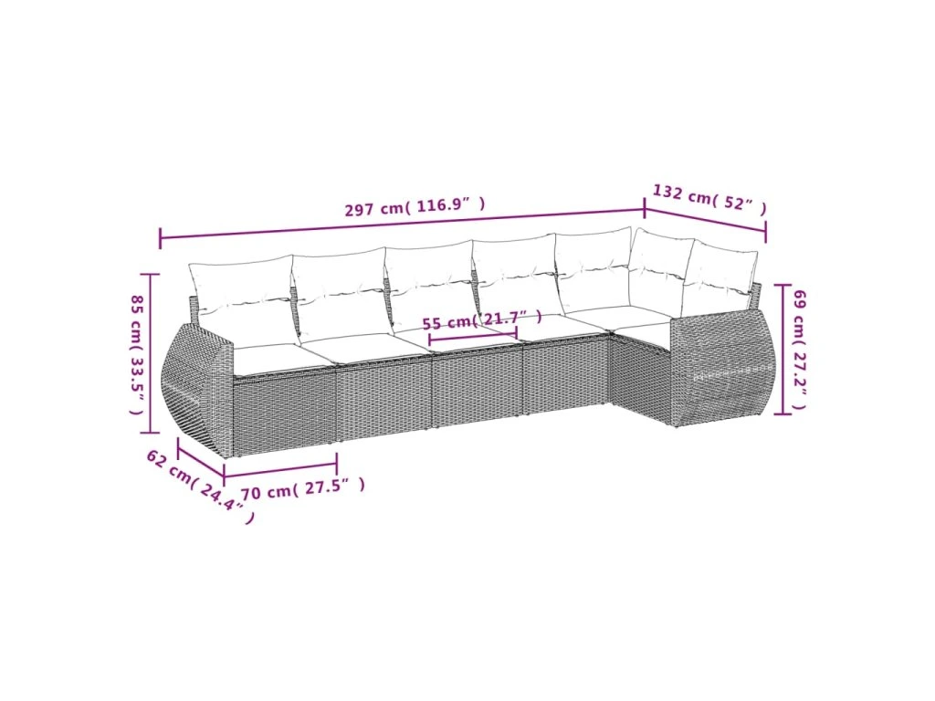 Tato zahradní sedací souprava je dokonalým doplňkem vaší zahrady, terasy nebo dvorku a poskytne vám pohodlné a příjemné místo, kde si můžete povídat s rodinou a přáteli nebo jen tak odpočívat a užívat si pobyt venku.
