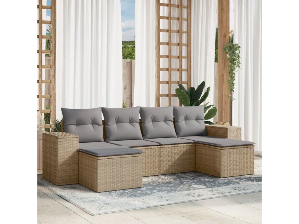6dílná zahradní sedací souprava s poduškami béžová polyratan 3222918