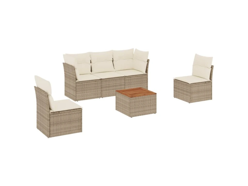6dílná zahradní sedací souprava s poduškami béžová polyratan 3223545