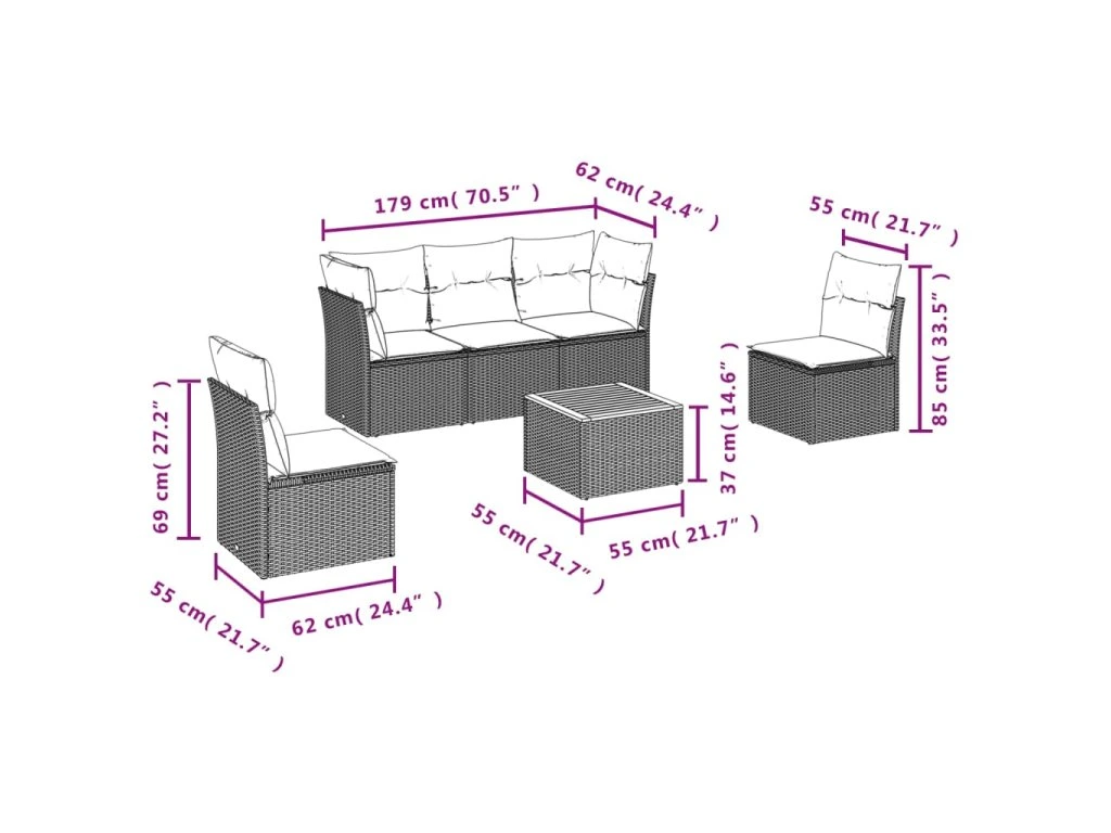 Tato zahradní sedací souprava je dokonalým doplňkem vaší zahrady, terasy nebo dvorku a poskytne vám pohodlné a příjemné místo, kde si můžete povídat s rodinou a přáteli nebo jen tak odpočívat a užívat si pobyt venku.