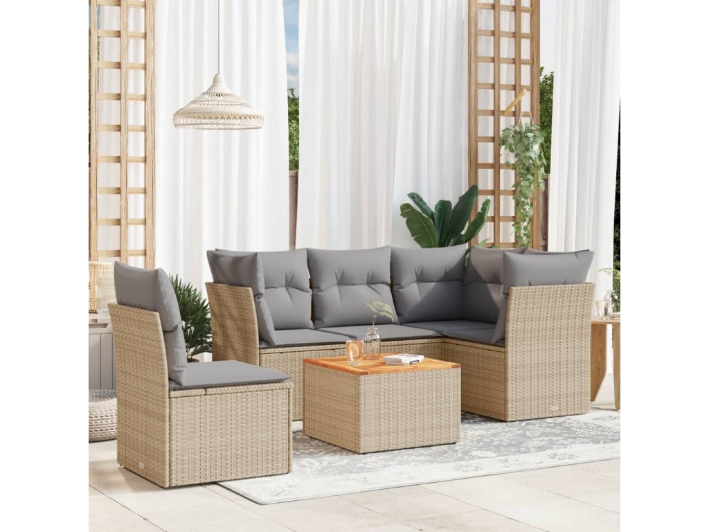 6dílná zahradní sedací souprava s poduškami béžová polyratan 3223644
