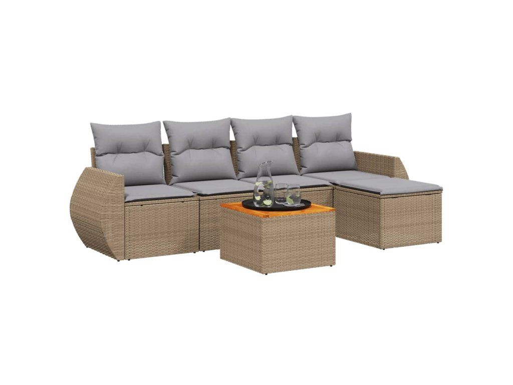 6dílná zahradní sedací souprava s poduškami béžová polyratan 3224981