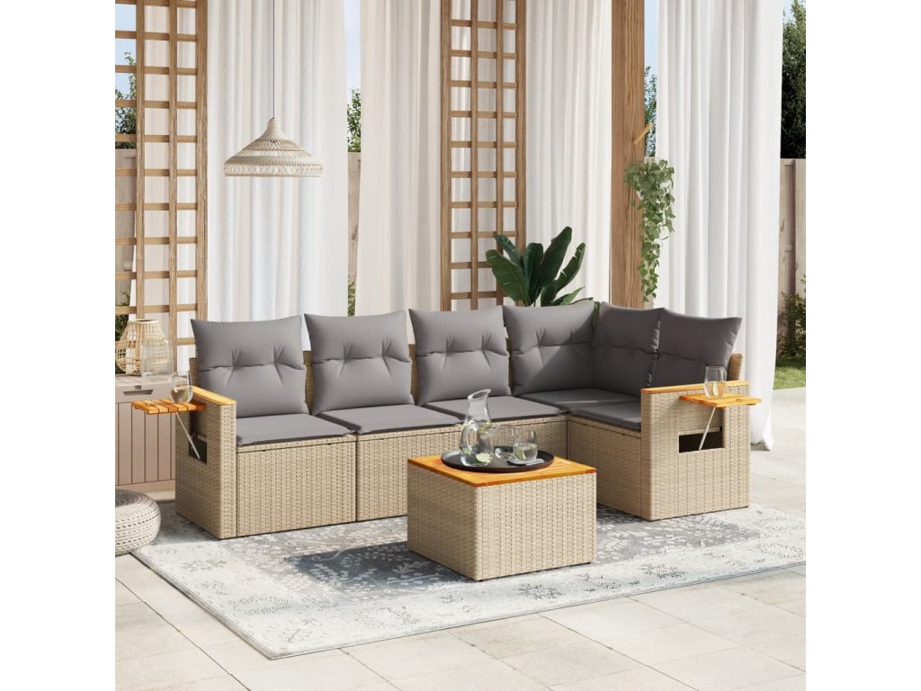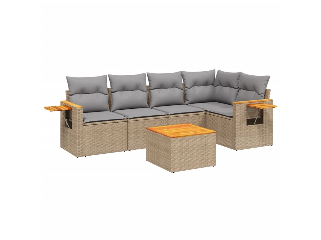 6dílná zahradní sedací souprava s poduškami béžová polyratan 3226794