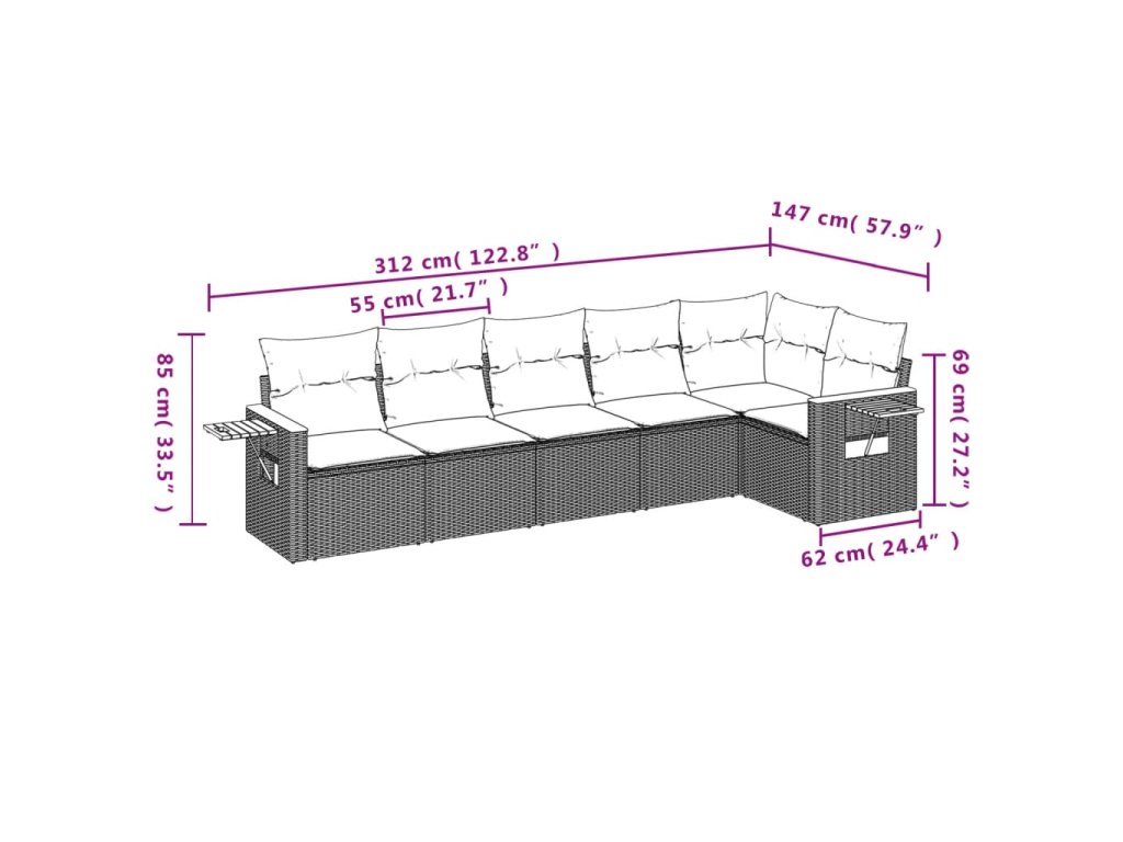 6dílná zahradní sedací souprava s poduškami béžová polyratan 3226829