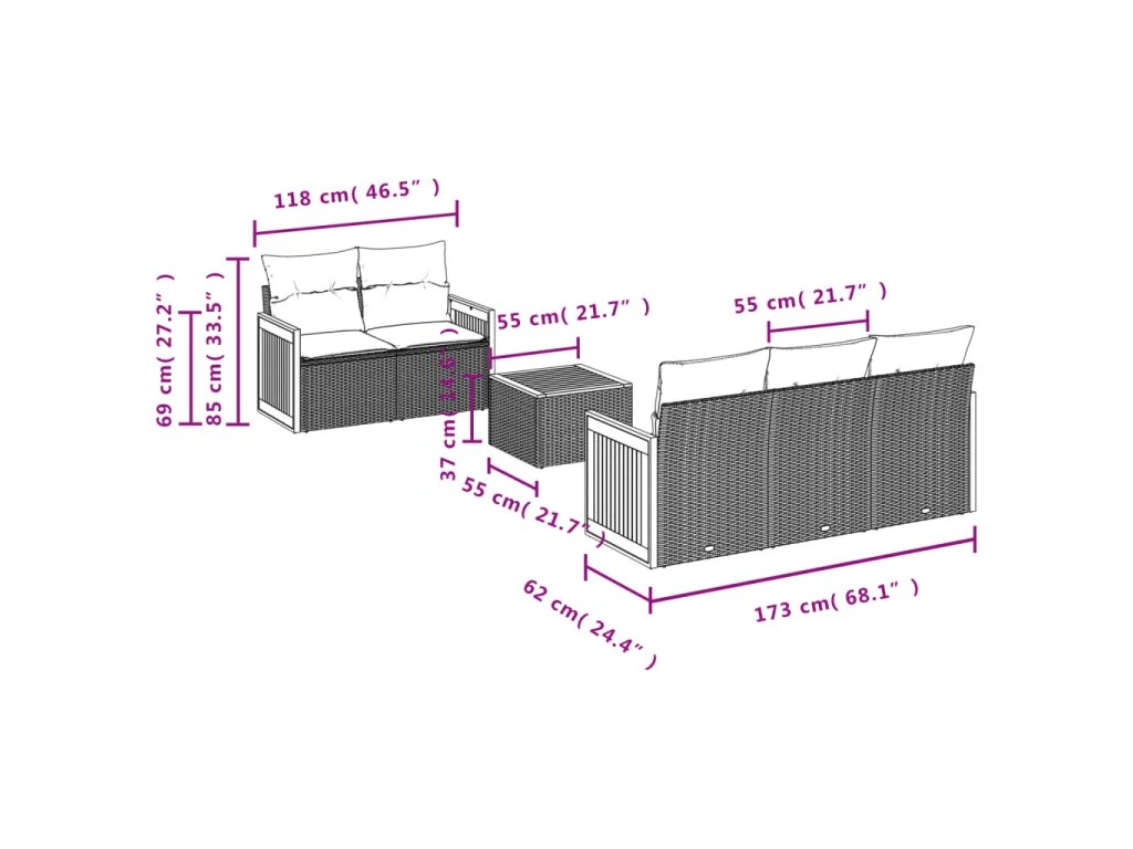 Tato zahradní sedací souprava je dokonalým doplňkem vaší zahrady, terasy nebo dvorku a poskytne vám pohodlné a příjemné místo, kde si můžete povídat s rodinou a přáteli nebo jen tak odpočívat a užívat si pobyt venku.