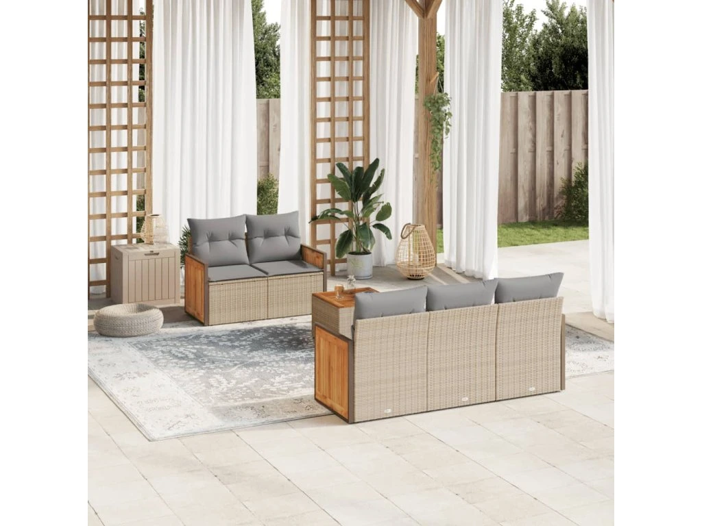 6dílná zahradní sedací souprava s poduškami béžová polyratan 3227466