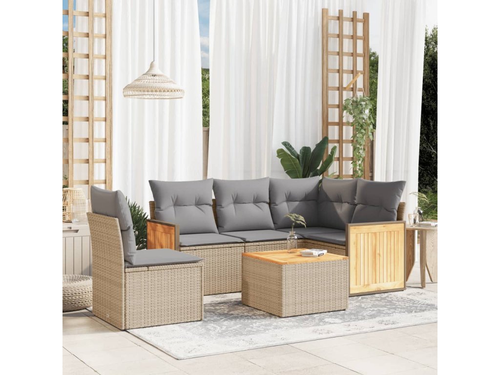 6dílná zahradní sedací souprava s poduškami béžová polyratan 3227662
