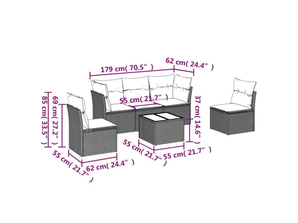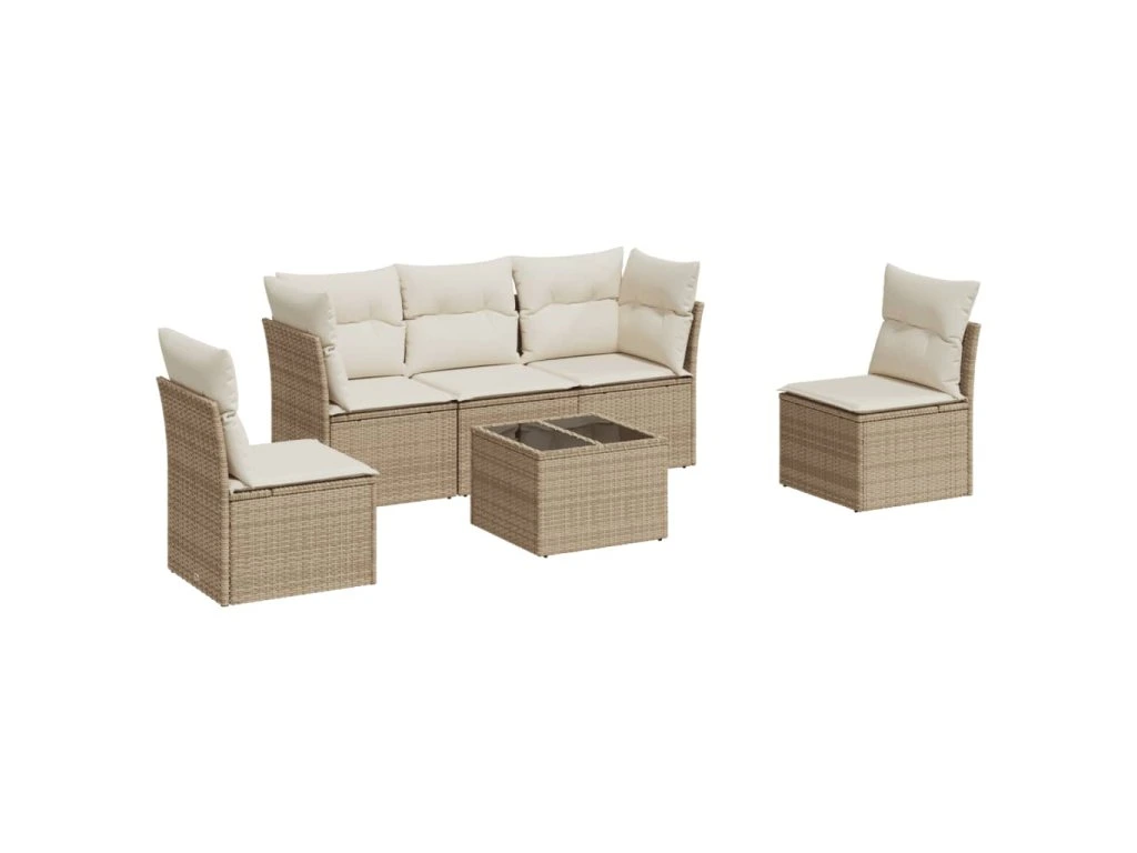 6dílná zahradní sedací souprava s poduškami béžová polyratan 3249197