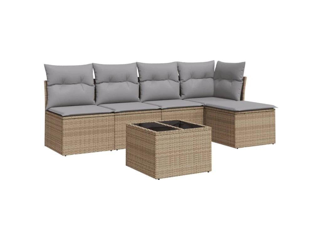 6dílná zahradní sedací souprava s poduškami béžová polyratan 3249368