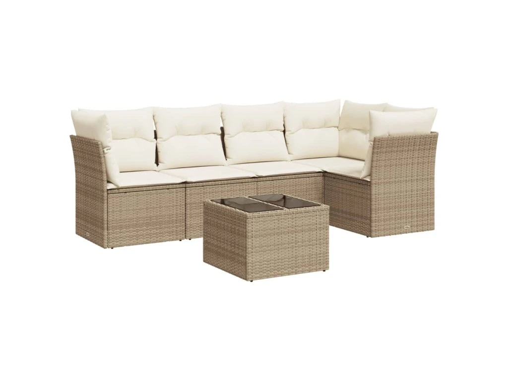 6dílná zahradní sedací souprava s poduškami béžová polyratan 3249447