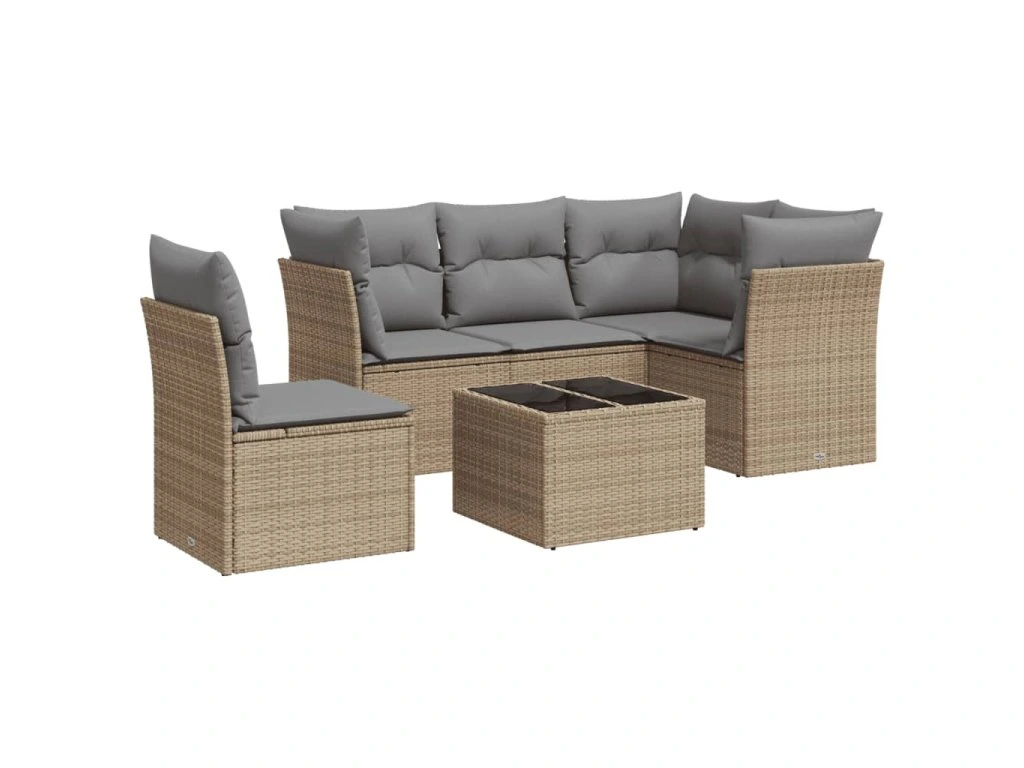 6dílná zahradní sedací souprava s poduškami béžová polyratan 3249488