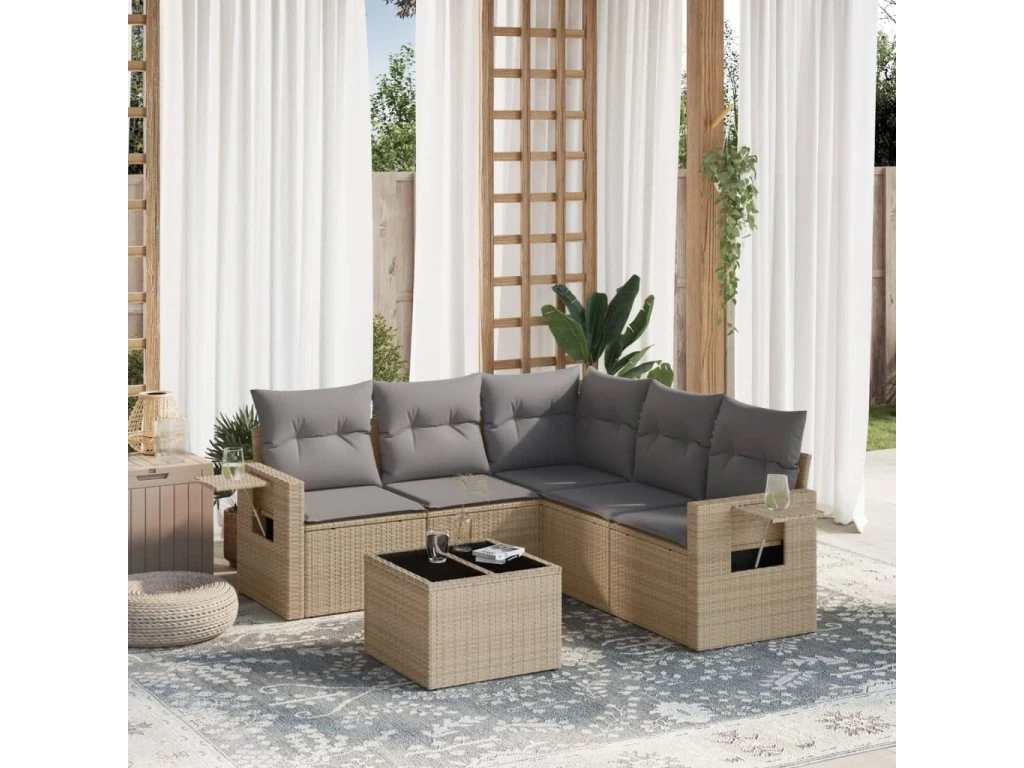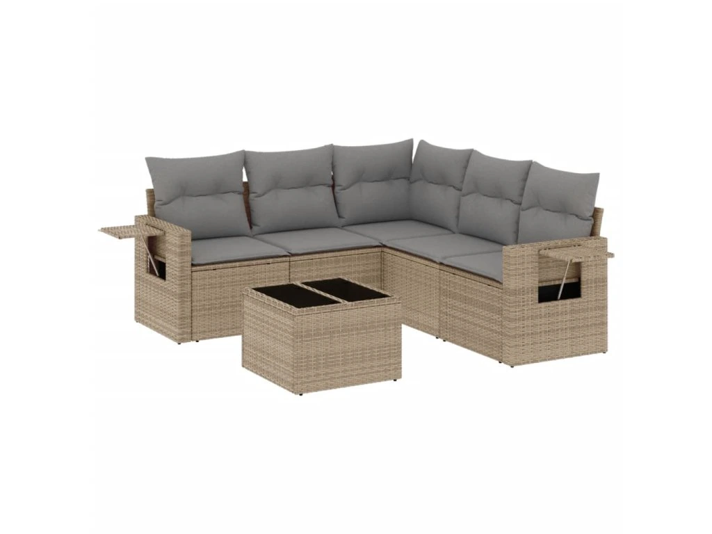 6dílná zahradní sedací souprava s poduškami béžová polyratan 3252496