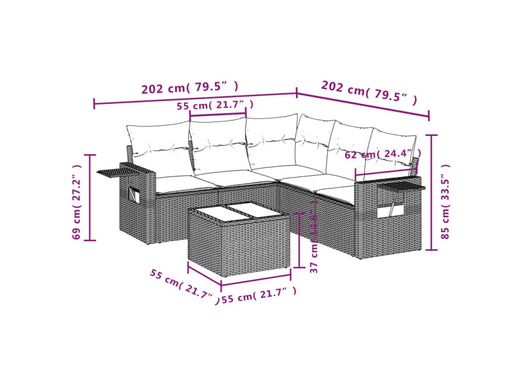 Tato zahradní sedací souprava je dokonalým doplňkem vaší zahrady, terasy nebo dvorku a poskytne vám pohodlné a příjemné místo, kde si můžete povídat s rodinou a přáteli nebo jen tak odpočívat a užívat si pobyt venku.