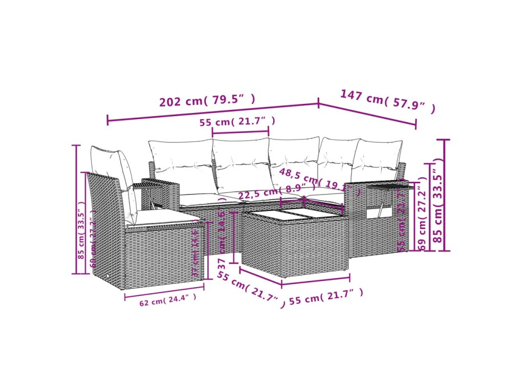 Tato zahradní sedací souprava je dokonalým doplňkem vaší zahrady, terasy nebo dvorku a poskytne vám pohodlné a příjemné místo, kde si můžete povídat s rodinou a přáteli nebo jen tak odpočívat a užívat si pobyt venku.