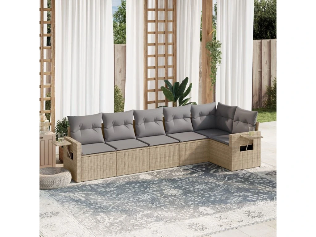 6dílná zahradní sedací souprava s poduškami béžová polyratan 3252526