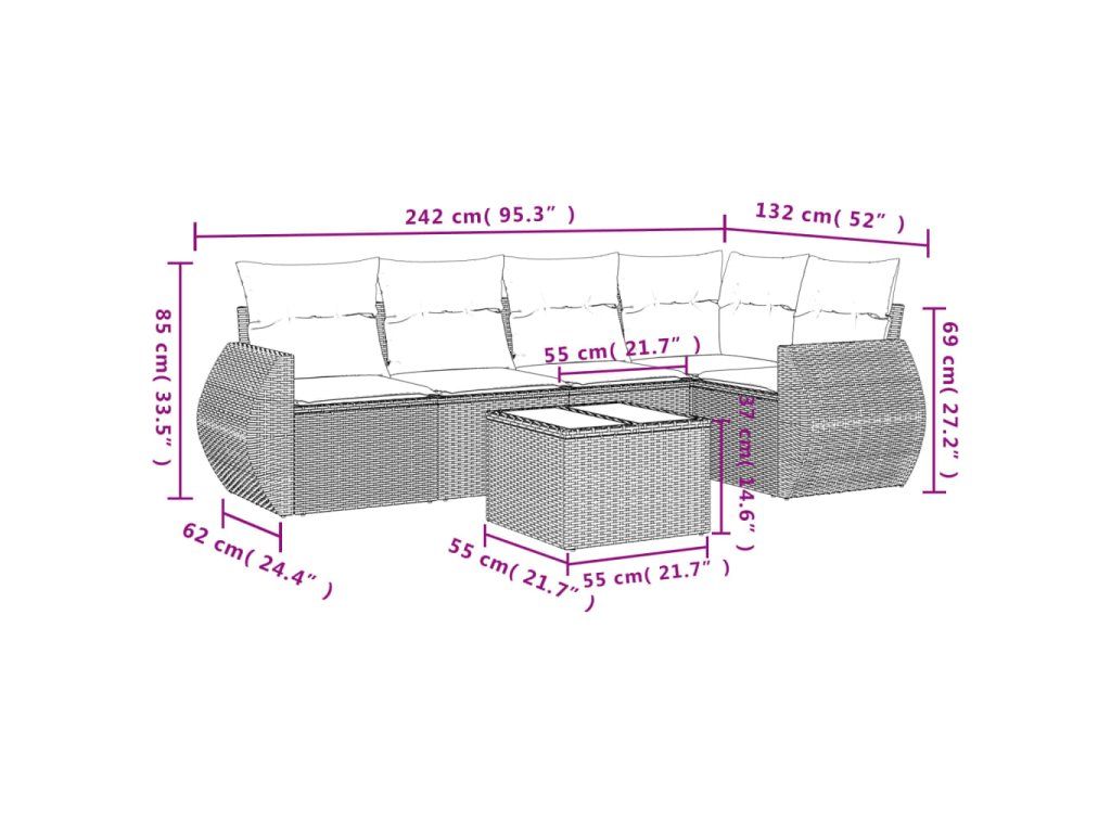 Tato zahradní sedací souprava je dokonalým doplňkem vaší zahrady, terasy nebo dvorku a poskytne vám pohodlné a příjemné místo, kde si můžete povídat s rodinou a přáteli nebo jen tak odpočívat a užívat si pobyt venku.