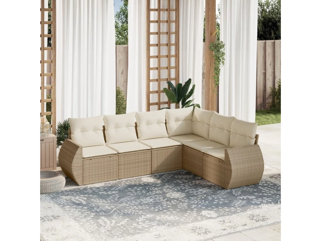 6dílná zahradní sedací souprava s poduškami béžová polyratan 3253745