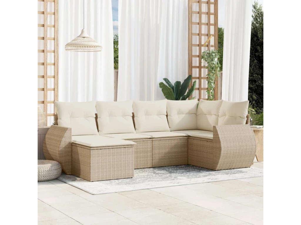 6dílná zahradní sedací souprava s poduškami béžová polyratan 3253995
